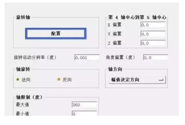 我们都知道旋转坐标的变化会导致直线轴坐标的偏移。那么分析旋转轴的旋转中心就显得尤为重要。对于双转台结构机床,C轴也就是第5轴的控制点通常在机床工作台面的回转中心。而第4轴通常选择第四轴轴线的中点作为控制点。