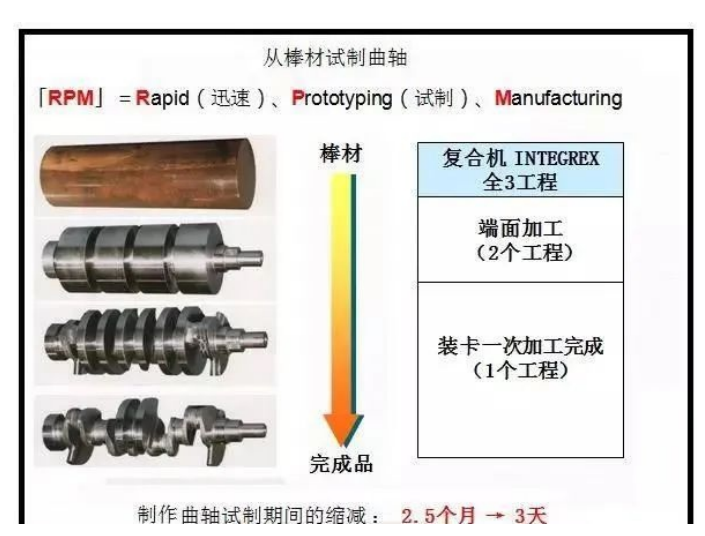 但是使用复合加工机仅需一-道即可成型, 只需要放到曲轴磨床磨削完成最后-道工艺即可。