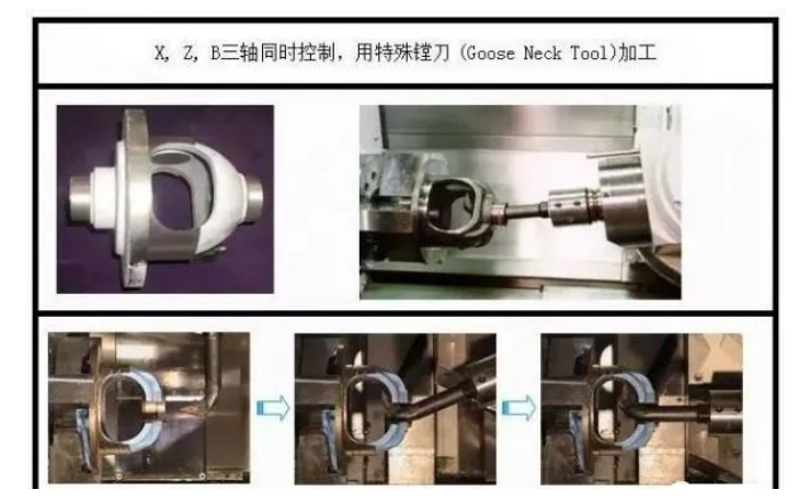 这是一个加工差速器壳体的案例。之前车内球面的加工方案是使用特殊刀具,需要人手工把刀具塞进去,然后再将刀架拉过来进行安装。
